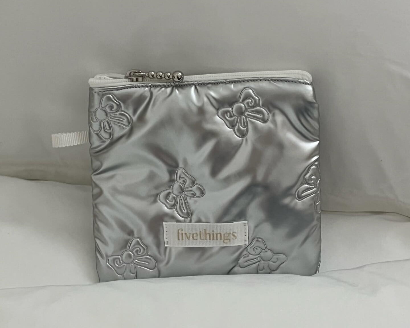 fivethingsのポーチ♡トレンドのシルバーとリボンが組み合わさった流行中のデザイン。